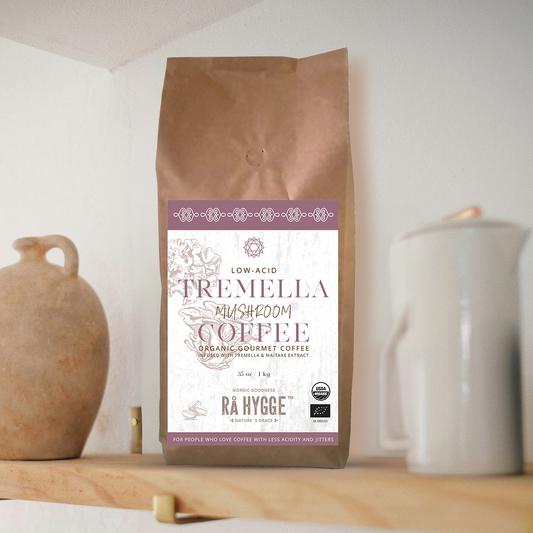 Kogege ülimat kohvinaudingut Rå Hygge Tremella kohviga – see on ainulaadne segu, mis ühendab endas esmaklassilise kohvi rikkalikud ja orgaanilised maitsed Tremella seente erakordsete eelistega. Oma ilu parandavate omaduste poolest tuntud Tremella seened toetavad loomuliku kollageeni tootmist, lisades teie igapäevasele kohvirituaalile luksusliku hõngu. Meie madala happesusega kohv on loodud pakkuma sujuvat ja õrna kogemust, vaba traditsiooniliste kohvidega sageli kaasnevast värinast ja happesusest. Ideaalne neile, kes otsivad tasakaalustatud energialaengut, Rå Hygge Tremella kohv pärineb väikestest mahefarmidest, tagades, et iga tass toetab nii inimesi kui ka planeeti. Määratlege oma kohvimomendid uuesti seguga, mis rõõmustab teie maitsemeeli ja aitab kaasa teie üldisele heaolule. Naudi Tremella kohvi ilu ja tõsta oma kohvikogemus juba täna kõrgemale.